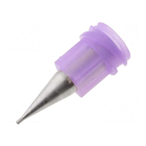 Dysza dozownicza o rozmiarze 23 charakteryzuje się średnicą wewnętrzną wynoszącą 0,564mm. Element posiada korpus w kolorze fioletowym i jest przeznaczony do montażu przy użyciu standardowego systemu Luer Lock.