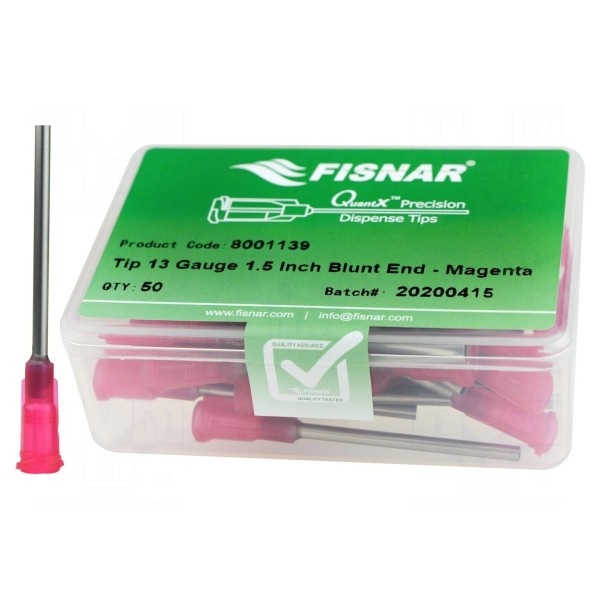 Prosta igła dozująca o rozmiarze 13 przeznaczona jest do współpracy z dozownikami. Element wykonany ze stali został osadzony w korpusie z polipropylenu o różowym kolorze, co umożliwia łatwą identyfikację rozmiaru. Średnica wewnętrzna igły wynosi 1,78 mm, a jej długość całkowita to 1,5 cala.