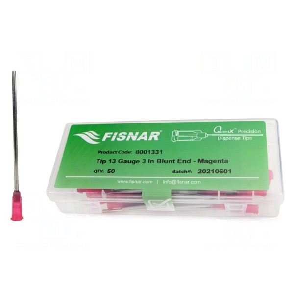 Igła dozująca o rozmiarze 13 wykonana jest ze stali z mocowaniem typu Luer Lock, co zapewnia stabilność podczas montażu. Konstrukcja igły jest prosta, a jej średnica wewnętrzna wynosi 1,78 mm. Element przeznaczony jest do użytku z dozownikami.