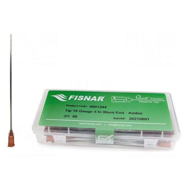 Igła dozująca prosta wykonana ze stali o rozmiarze 15 posiada średnicę wewnętrzną wynoszącą 1,37mm. Długość elementu wynosi 4 cale, a całość wyposażona jest w standardowe mocowanie typu Luer Lock, co zapewnia kompatybilność z odpowiednimi dozownikami. Korpus igły wyprodukowano z polipropylenu w kolorze bursztynowym.