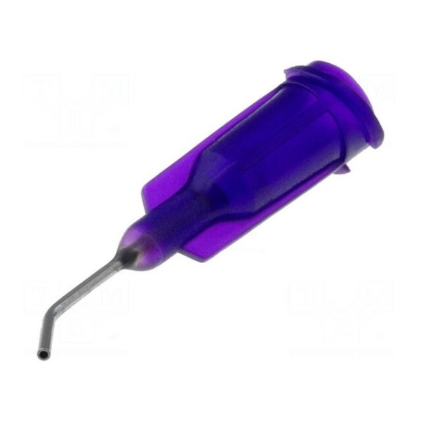 Igła stalowa o rozmiarze 21 przeznaczona jest do wykorzystania z dozownikami. Model posiada zagięty kształt pod kątem 45° oraz średnicę wewnętrzną wynoszącą 0,51 mm. Długość elementu wynosi 0,5 cala.