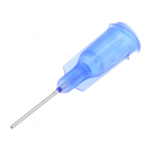 Igła dozująca 8001090 to prosta końcówka o rozmiarze 22, wykonana ze stali. Średnica wewnętrzna elementu wynosi 0,41 mm, a długość igły to 0,5 cala. Konstrukcja charakteryzuje się niebieskim korpusem wyprodukowanym z polipropylenu.