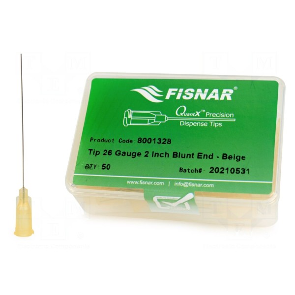 Prosta igła dozująca o rozmiarze 26 przeznaczona do użytku z dozownikami. Element charakteryzuje się wewnętrzną średnicą 0,23 mm oraz długością wynoszącą 2 cale. Konstrukcja składa się ze stalowej igły oraz korpusu wykonanego z polipropylenu w kolorze beżowym.