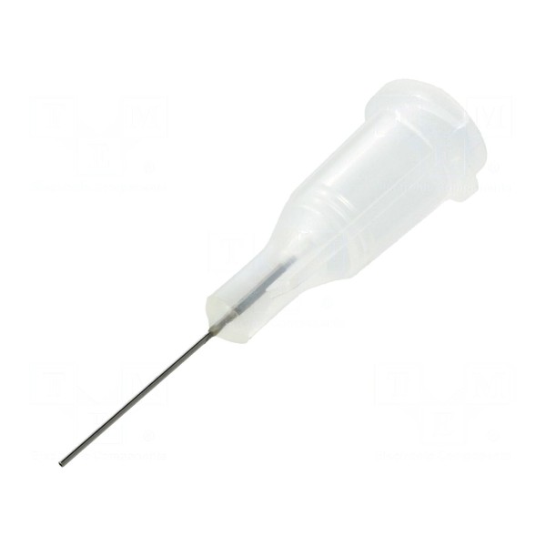 Igła dozująca o długości 0,5 cala i rozmiarze 27 posiada prostą konstrukcję wykonaną ze stali. Element wyposażony jest w korpus z polipropylenu w kolorze przezroczystym, zapewniający średnicę wewnętrzną na poziomie 0,2 mm.