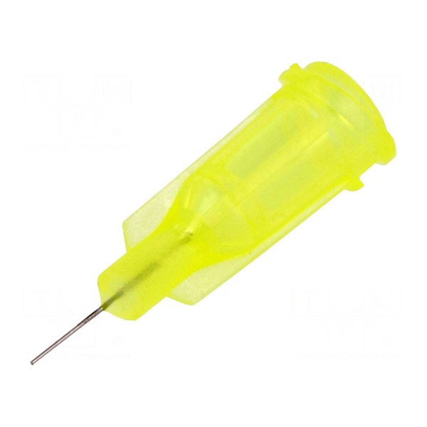 Igła dozująca o rozmiarze 32 została wykonana ze stali i osadzona w korpusie z polipropylenu w kolorze żółtym. Element charakteryzuje się prostym kształtem oraz średnicą wewnętrzną wynoszącą 0,1 mm. Całkowita długość igły to 0,25 cala.