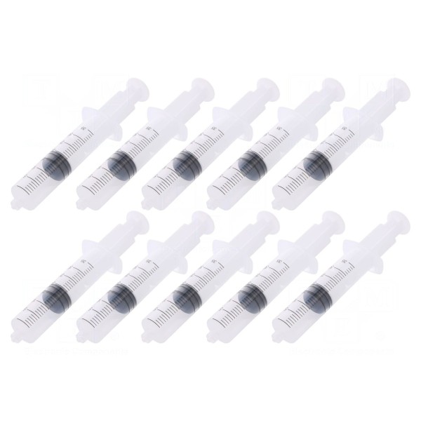 Obudowa strzykawki jest przezroczysta, co pozwala na bieżącą kontrolę zawartości oraz poziomu substancji. W opakowaniu znajduje się 10 sztuk produktu.