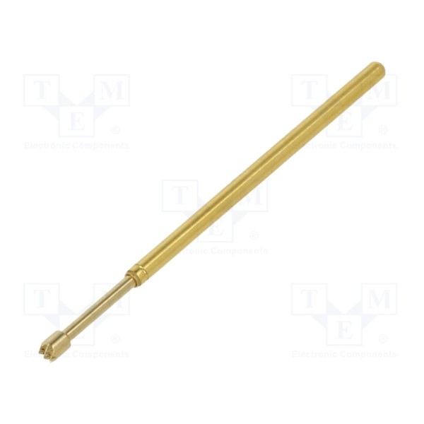Igła testowa FIXTEST o długości 33,4mm została wykonana z miedzi berylowej (CuBe) z powierzchnią wykończoną warstwą złota. Element posiada końcówkę o kształcie ząbkowanym i średnicy 1,5mm, co pozwala na stabilny kontakt podczas pomiarów. Parametry elektryczne zapewniają obsługę prądu znamionowego w zakresie 3A do 4A przy maksymalnej rezystancji styku wynoszącej 20mΩ.