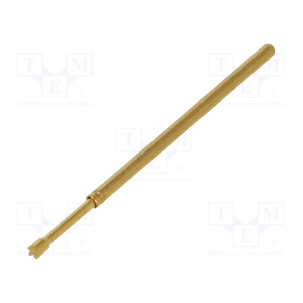 Igła testowa służy do realizacji połączeń w układach pomiarowych przy prądzie znamionowym do 3A. Komponent charakteryzuje się rezystancją styku na poziomie maksymalnie 20mΩ oraz siłą ugięcia sprężyny wynoszącą 1,5N.