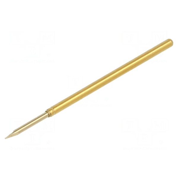 Igła testowa o długości 33,4 mm charakteryzuje się średnicą końcówki wynoszącą 0,9 mm oraz pozłacaną powierzchnią styku. Element przystosowany jest do pracy w szerokim zakresie temperatur od -55°C do 120°C, co pozwala na wykorzystanie w zróżnicowanych warunkach środowiskowych.