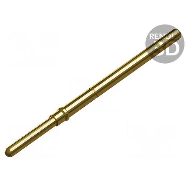 Igła testowa wykonana z miedzi berylowej (CuBe) z powierzchnią styku pokrytą warstwą złota. Element charakteryzuje się prądem znamionowym wynoszącym 3A lub 4A oraz rezystancją styku na poziomie maksymalnie 20mΩ. Komponent został zaprojektowany do pracy w szerokim zakresie temperatur roboczych od -55°C do 120°C.