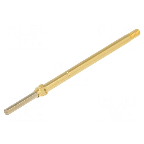 Igła testowa przeznaczona do zastosowań pomiarowych, wykonana ze stali z pokryciem złoconym. Element charakteryzuje się prądem znamionowym wynoszącym 3A lub 4A oraz rezystancją styku na poziomie maksymalnie 25mΩ.
