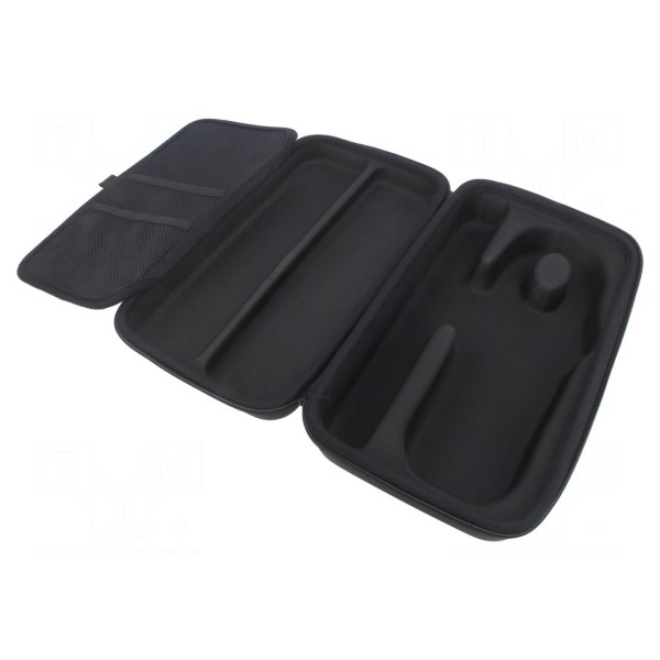 Produkt jest kompatybilny z miernikami cęgowymi modeli CM72, CM74, CM82, CM83 oraz CM85. Konstrukcja zapewnia dostęp do sprzętu oraz ułatwia jego przenoszenie wraz z wyposażeniem.