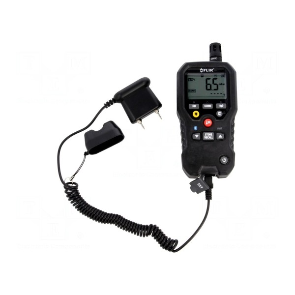 Przyrząd wyposażony jest w wyświetlacz LCD z podświetleniem oraz bargrafem. Użytkownik ma do dyspozycji funkcje HOLD, MIN/MAX oraz pamięć 20 pomiarów. Komunikacja bezprzewodowa odbywa się za pośrednictwem protokołów Bluetooth oraz METERLiNK, zapewniając współpracę z oprogramowaniem FLIR Tools dostępnym w Google Play. Zasilanie urządzenia stanowi pojedyncza bateria 6LR61 9V, a o konieczności jej wymiany informuje dedykowany wskaźnik.