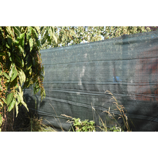 Mata chroni uprawy przed słońcem, wiatrem i rozsiewaniem się chwastów. Montaż na ogrodzeniu zwiększa prywatność.