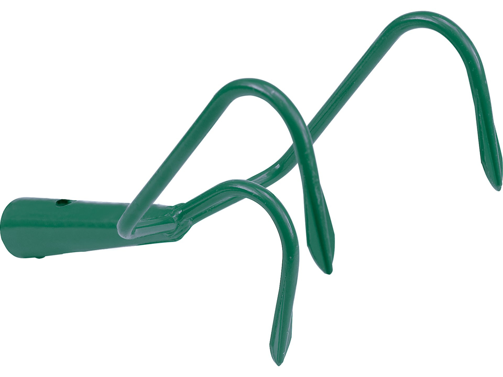 Trzy stalowe zęby o hakowatym profilu ze spłaszczonymi, zaostrzonymi krawędziami.