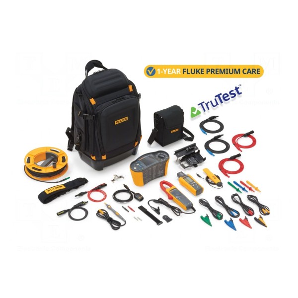 W zestawie: adapter, analizator, bezpieczniki, cęgi prądowe FLK-I100, roczna subskrypcja Fluke Premium Care, miernik promieniowania słonecznego FLK-IRR2-BT, pasek do przenoszenia, plecak, przewód na szpuli TL1000/30M, przewód USB, przewody pomiarowe TL1000, przewody pomiarowe TL1000-MC4, sonda pomiarowa, sonda temperaturowa FLK-80PR-IRR, sonda ze zdalnym sterowaniem TP1000, torba ochronna, wspornik montażowy, zaczep magnetyczny, zestaw przewodów pomiarowych PVLEAD3 do cęgów prądowych oraz zestaw złącz.