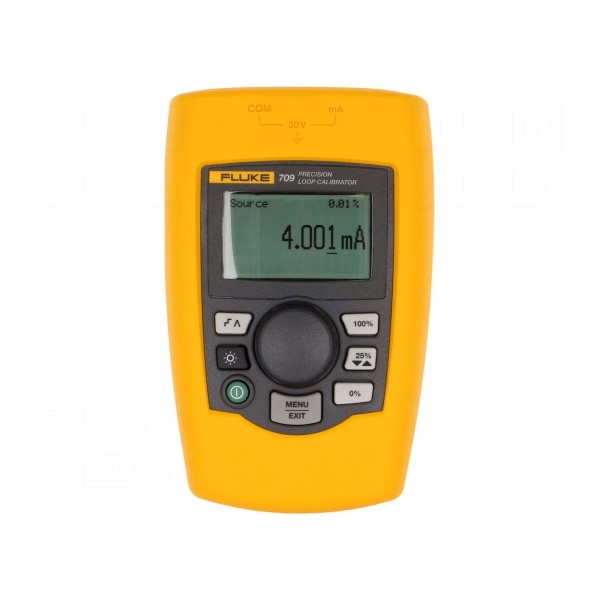 Kalibrator pętli FLUKE 709 to urządzenie przeznaczone do precyzyjnego pomiaru oraz generowania sygnałów w układach automatyki. Przyrząd umożliwia pomiar napięcia DC w zakresie od 1mV do 30V oraz prądu DC w zakresie od 0,001mA do 24mA, przy czym dla obu wartości dokładność pomiarowa wynosi ±(0,01% + 2 cyfry). Urządzenie wyposażono w czytelny wyświetlacz LCD o rozdzielczości 128x64 punkty z funkcją podświetlenia, co ułatwia pracę w warunkach ograniczonego oświetlenia.