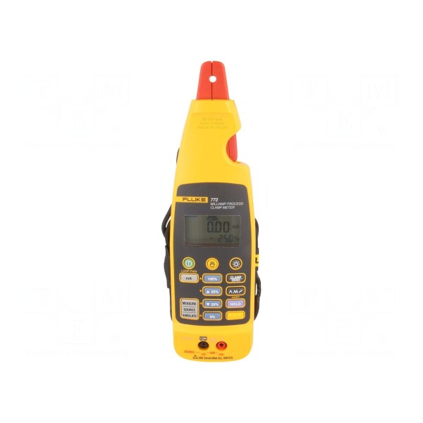 Miernik pętli prądowej FLUKE 772 to cęgowy przyrząd diagnostyczny przeznaczony do pracy z sygnałami prądowymi w zakresie 4–20mA. Urządzenie umożliwia pomiar prądu w pętlach sterowania bez konieczności ich rozpinania, co znacząco ułatwia diagnostykę systemów automatyki. Wbudowane funkcje obejmują tryb źródła oraz tryb symulacji sygnału 0–24mA, a także zasilanie pętli napięciem 24V DC.