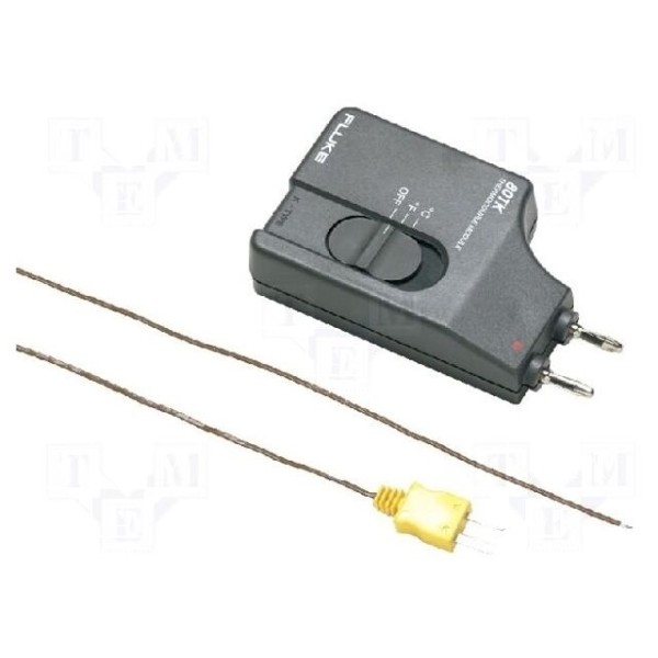 Moduł pomiarowy Fluke 80TK umożliwia rozszerzenie funkcjonalności przyrządów pomiarowych o możliwość odczytu wartości temperatury. Urządzenie obsługuje zakres pomiarowy od –50°C do 1000°C.
