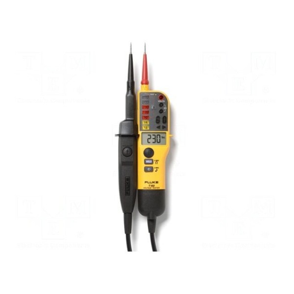 Tester elektryczny FLUKE T150 umożliwia pomiar napięcia AC i DC w zakresie od 6V do 690V, a także pomiar rezystancji od 1Ω do 1999Ω. Urządzenie pracuje w paśmie częstotliwości 0–400Hz i wyposażone jest w wyświetlacz LCD oraz wskaźniki LED. Dokładność pomiaru napięcia AC oraz DC wynosi ±(3% + 5 cyfr), natomiast dla rezystancji parametr ten określa ±(5% + 10 cyfr).