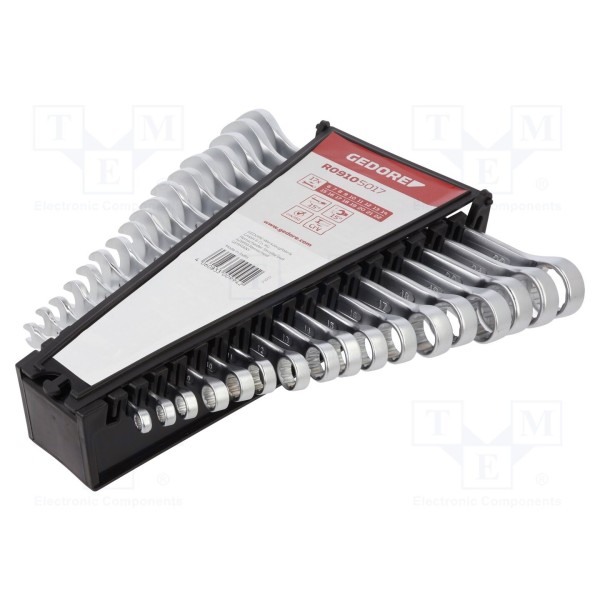 Zestaw 17 kluczy płasko-oczkowych dwustronnych 6–22mm