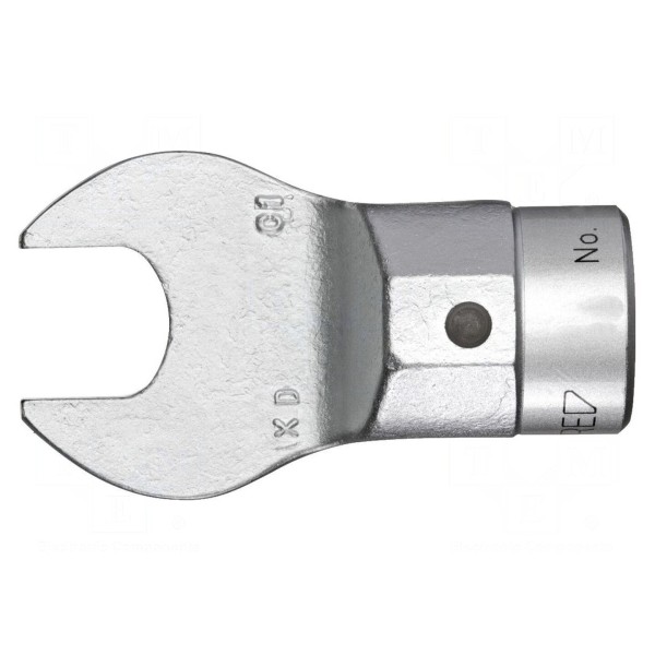 Końcówka klucza płaska przeznaczona do współpracy z kluczami dynamometrycznymi. Element posiada jednostronną konstrukcję o rozmiarze roboczym 32 mm, zapewniając współpracę z gniazdem uchwytu o średnicy 22 mm.