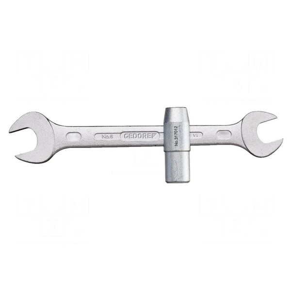 Klucz płaski dwustronny wyposażony w końcówki nasadowe o rozmiarach 17mm oraz 19mm. Narzędzie charakteryzuje się konstrukcją dostosowaną do pracy z dwoma różnymi wymiarami śrub bez konieczności zmiany osprzętu.
