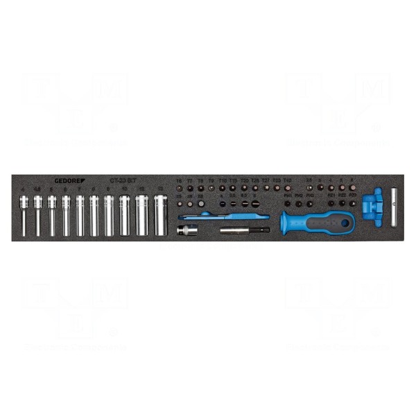 Zestaw zawiera narzędzia nasadowe z gniazdem uchwytu o rozmiarze 1/4". Komplet składa się z 45 elementów przeznaczonych do prac montażowych i serwisowych.