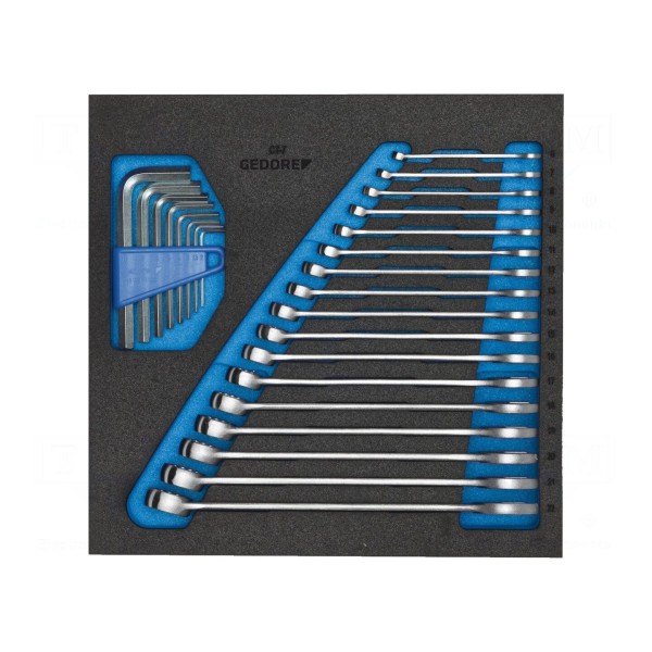 Zestaw 25 kluczy imbusowych oraz płasko-oczkowych we wkładce piankowej