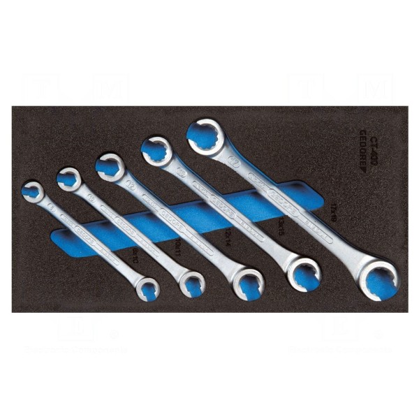 Klucz oczkowy półotwarty płaski, zestaw 5 sztuk