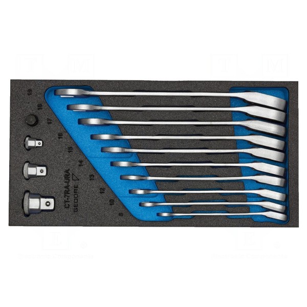 Zestaw kluczy płasko-oczkowych z grzechotką we wkładce piankowej