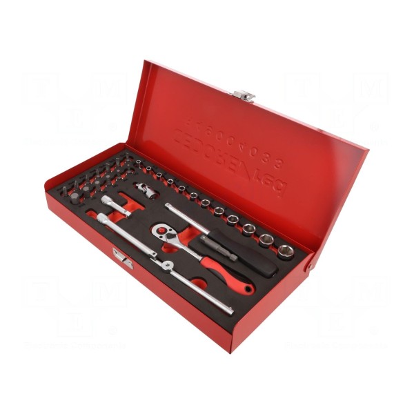 Zestaw zawiera 33 elementy przeznaczone do prac montażowych i warsztatowych. W skład kompletu wchodzą klucze nasadowe 6-kątne wykonane ze stali chromowo-wanadowej, co zapewnia trwałość narzędzi podczas użytkowania.