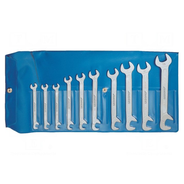 Zestaw zawiera dziesięć kluczy płaskich wykonanych ze stali chromowo-wanadowej. Narzędzia przeznaczone są do prac montażowych oraz obsługi połączeń śrubowych wymagających dostępu płaskiej końcówki.