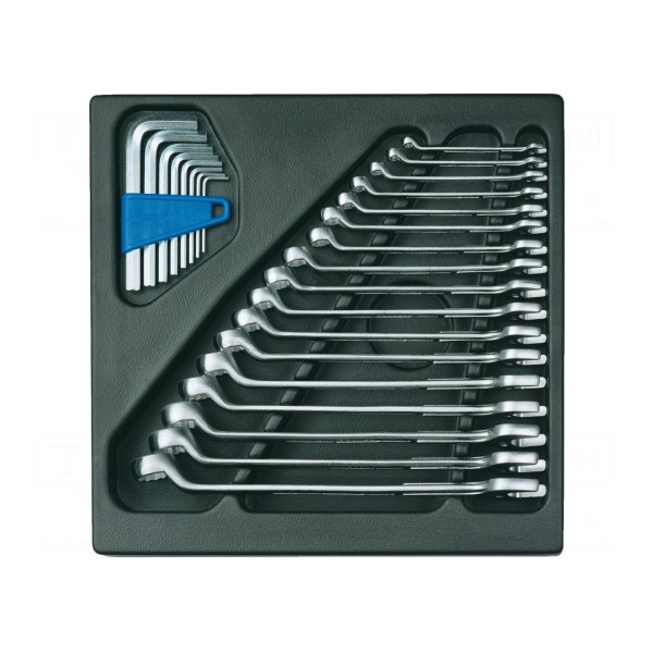 Zestaw kluczy imbusowych i płasko-oczkowych we wkładce z tworzywa