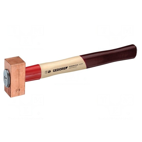 Młotek marki GEDORE posiada obuch wykonany z miedzi o masie 2kg. Narzędzie zostało wyposażone w trzonek wykonany z drewna hikorowego, co zapewnia stabilny uchwyt podczas pracy.