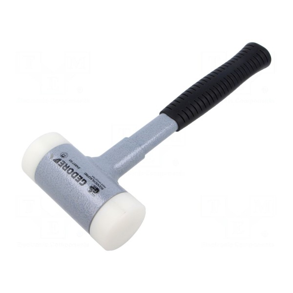 Młotek montażowy i warsztatowy charakteryzuje się konstrukcją bezodrzutową, co zwiększa kontrolę podczas wykonywania prac uderzeniowych. Narzędzie posiada okrągłe końcówki o średnicy 50mm, wykonane z poliamidu. Zastosowany materiał końcówek w kolorze białym cechuje się wysoką twardością.