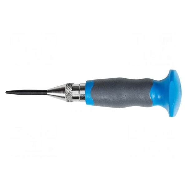 Punktak automatyczny marki GEDORE przeznaczony jest do wyznaczania punktów środkowych na powierzchniach materiałów obrabianych. Urządzenie generuje siłę uderzenia w zakresie od 60 do 130 N, co pozwala na precyzyjne znakowanie bez użycia młotka.