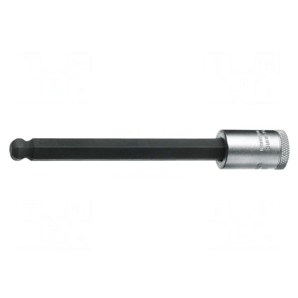 Nasadka imbusowa typu nasadowego o rozmiarze 5mm przeznaczona jest do pracy z napędami o gnieździe 3/8". Element charakteryzuje się całkowitą długością wynoszącą 132mm, co umożliwia dostęp do śrub w miejscach o utrudnionym dostępie.