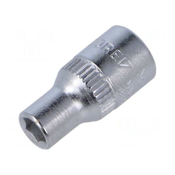 Zewnętrzna powierzchnia komponentu została wykończona warstwą chromu, która zwiększa odporność na korozję. Całkowita długość nasadki wynosi 25mm, co pozwala na pracę w ograniczonej przestrzeni roboczej.