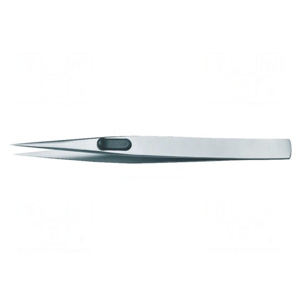 Pęseta o długości całkowitej 130 mm charakteryzuje się prostą konstrukcją oraz zwężonym profilem ostrzy. Zakończenie końcówki w formie ostrej umożliwia manipulację małymi elementami w różnych procesach montażowych i technicznych.