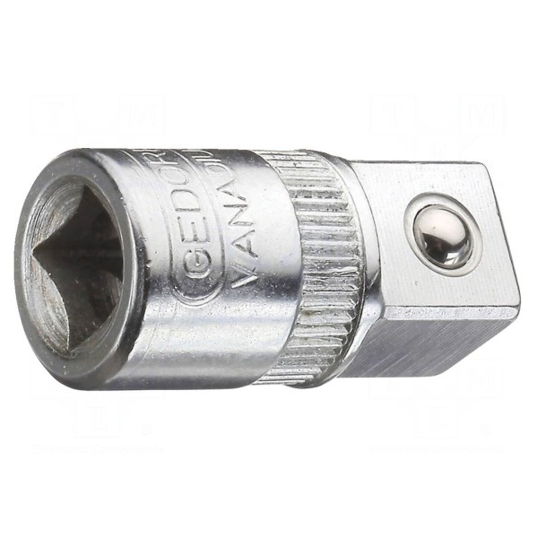 Redukcja nasadowa GEDORE o rozmiarze gniazda 3/8" oraz rozmiarze gniazda uchwytu 1/4" służy do łączenia narzędzi o różnych standardach mocowania. Element posiada konstrukcję typu kwadrat, co zapewnia stabilne przenoszenie momentu obrotowego pomiędzy kluczem a nasadką.