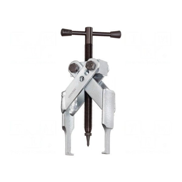 Ściągacz dwuramienny o wąskim profilu przeznaczony jest do demontażu elementów o średnicy do 80mm. Narzędzie wyposażone jest w pokrętło ułatwiające obsługę oraz gwint M10x1,5.