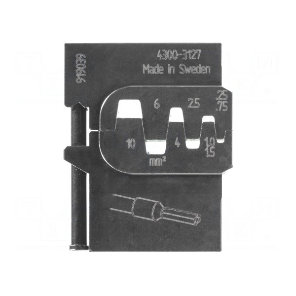 Szczęki do zaciskania przeznaczone są do obróbki tulejek zaciskowych. Element ten pozwala na efektywne łączenie przewodów o przekroju od 0,25mm² do 6mm².
