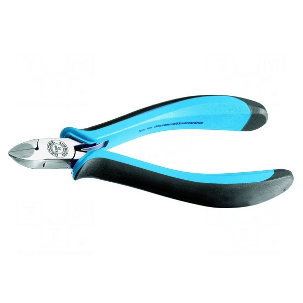 Szczypce boczne typu ESD o długości 125 mm są przeznaczone do pracy z kablami światłowodowymi z włókien szklanych. Narzędzie wyposażono w ostrza hartowane indukcyjnie, które osiągają twardość w zakresie 84–86 HRC.