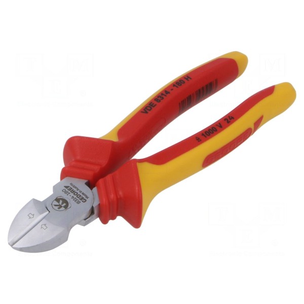 Szczypce boczne do cięcia 180mm, izolowane, hartowane ostrza