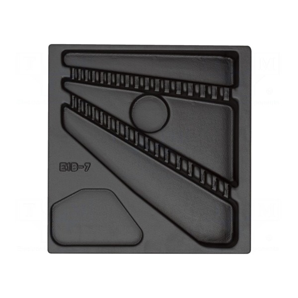 Wkładka przeznaczona do organizacji przestrzeni w pojemnikach narzędziowych. Produkt posiada wymiary zewnętrzne wynoszące 310mm x 42mm x 315mm.