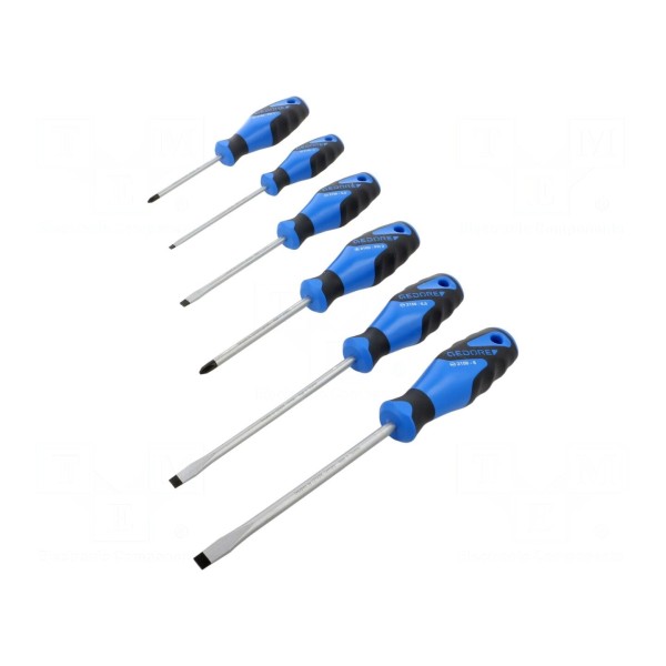 Zestaw 6 wkrętaków Phillips i płaskich z trójkomponentowymi rękojeściami