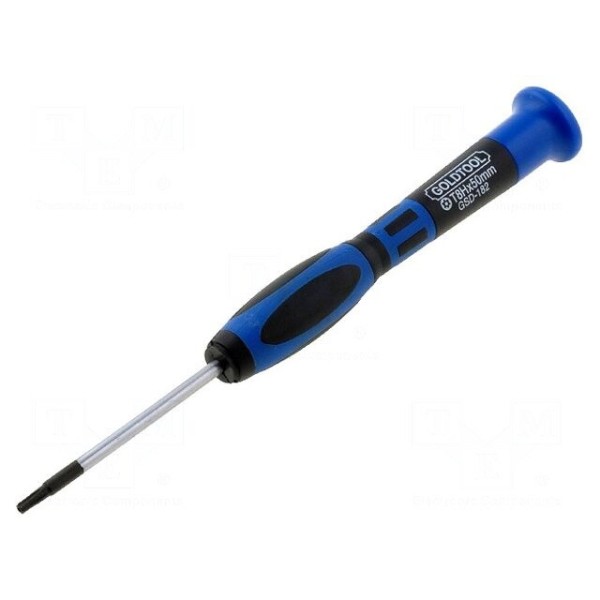 Wkrętak precyzyjny GOLDTOOL GSD-182 został zaprojektowany do prac wymagających wysokiej dokładności. Narzędzie wyposażono w grot typu Torx o rozmiarze TX08, co umożliwia pracę z odpowiednimi elementami złącznymi o tym profilu.
