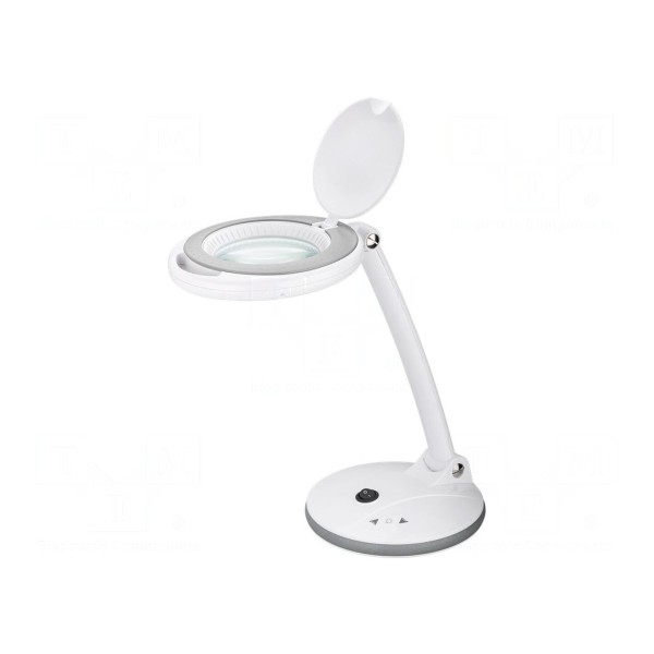 Lupa stołowa z podświetleniem posiada soczewkę o średnicy 100 mm oraz powiększenie wynoszące 3 dpt. Układ optyczny został zintegrowany z oświetleniem opartym na 30 diodach LED o temperaturze barwowej 6500K.