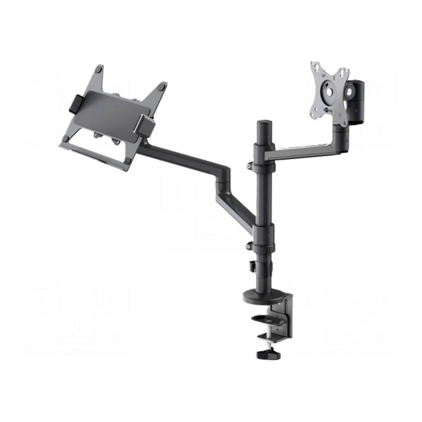 Element został wykonany w kolorze czarnym. Konstrukcja zapewnia obsługę standardu VESA w wymiarach 75x75mm oraz 100x100mm.